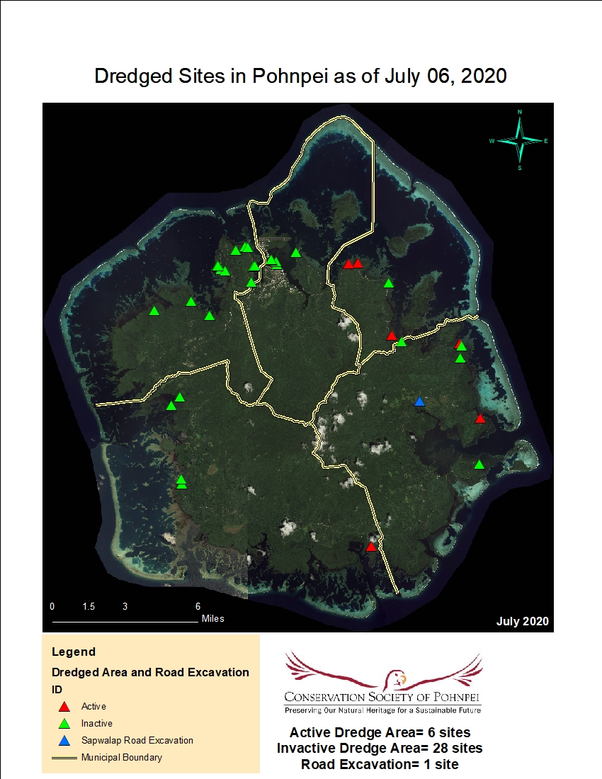 Dredged sites in Pohnpei as of July 06, 2020