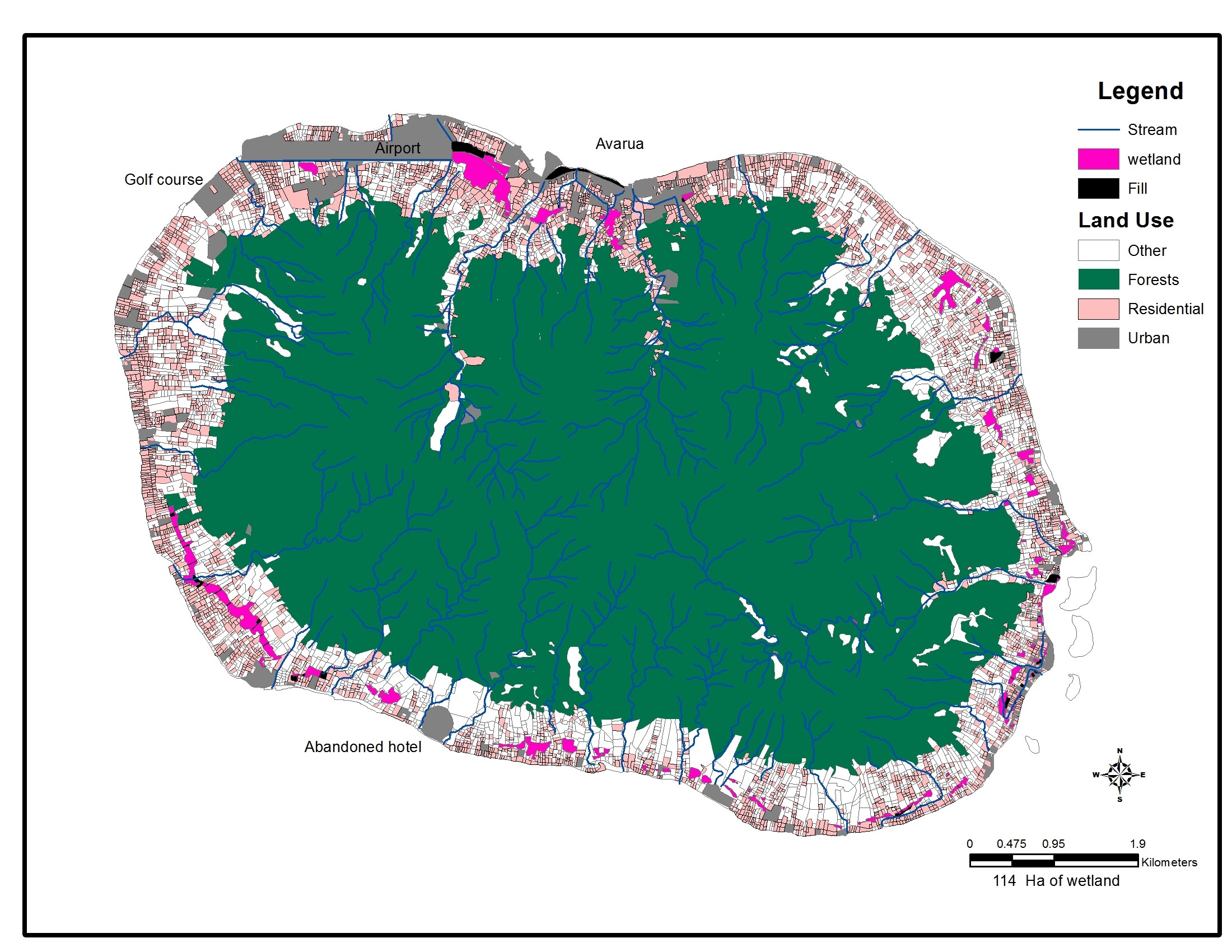 Rarotonga’s wetlands, with in-fill areas of wetlands, and other types of land-use. (SPREP, 2015; Data source NES)