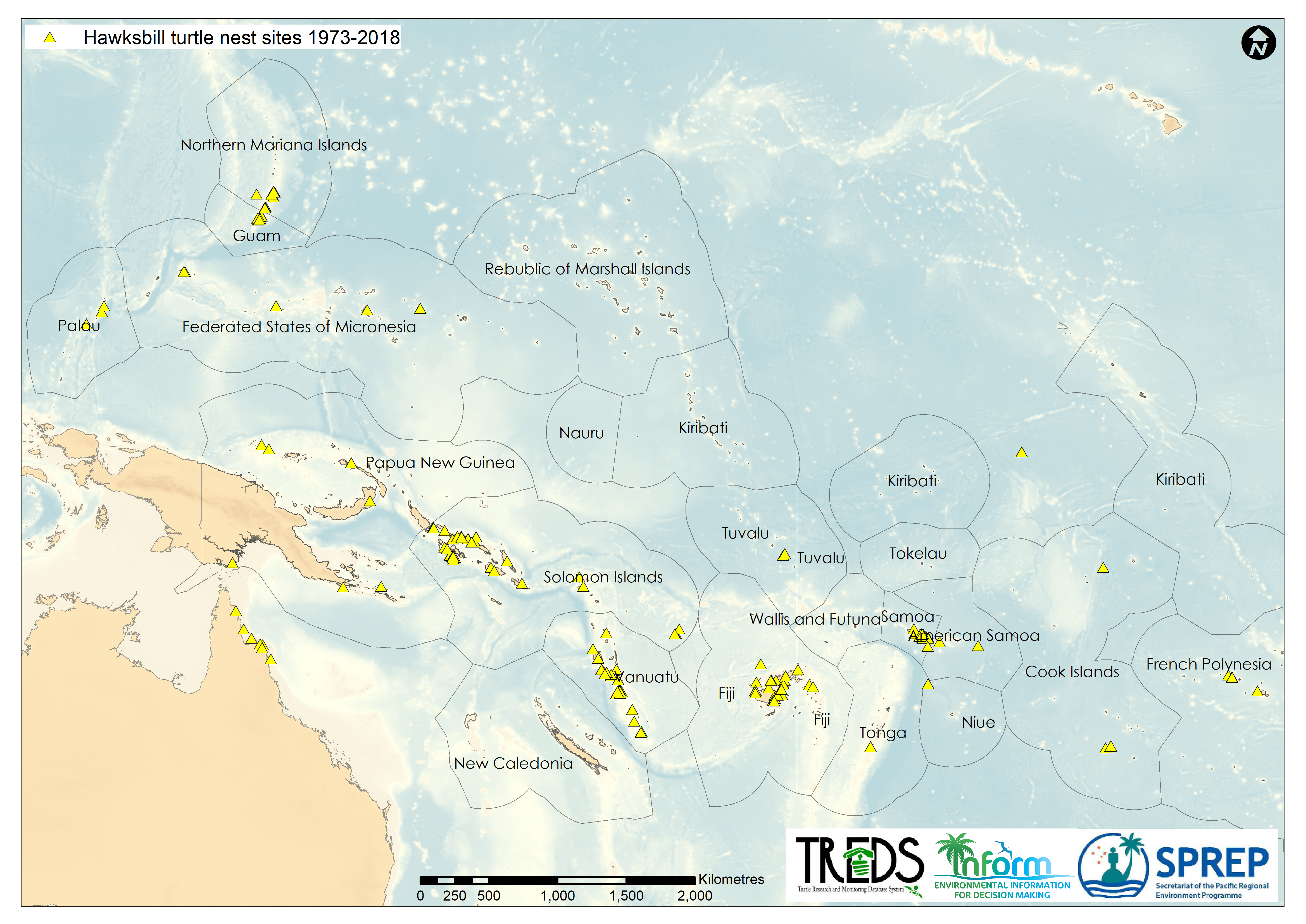 Hawksbill turtle nest sites 1973-2018