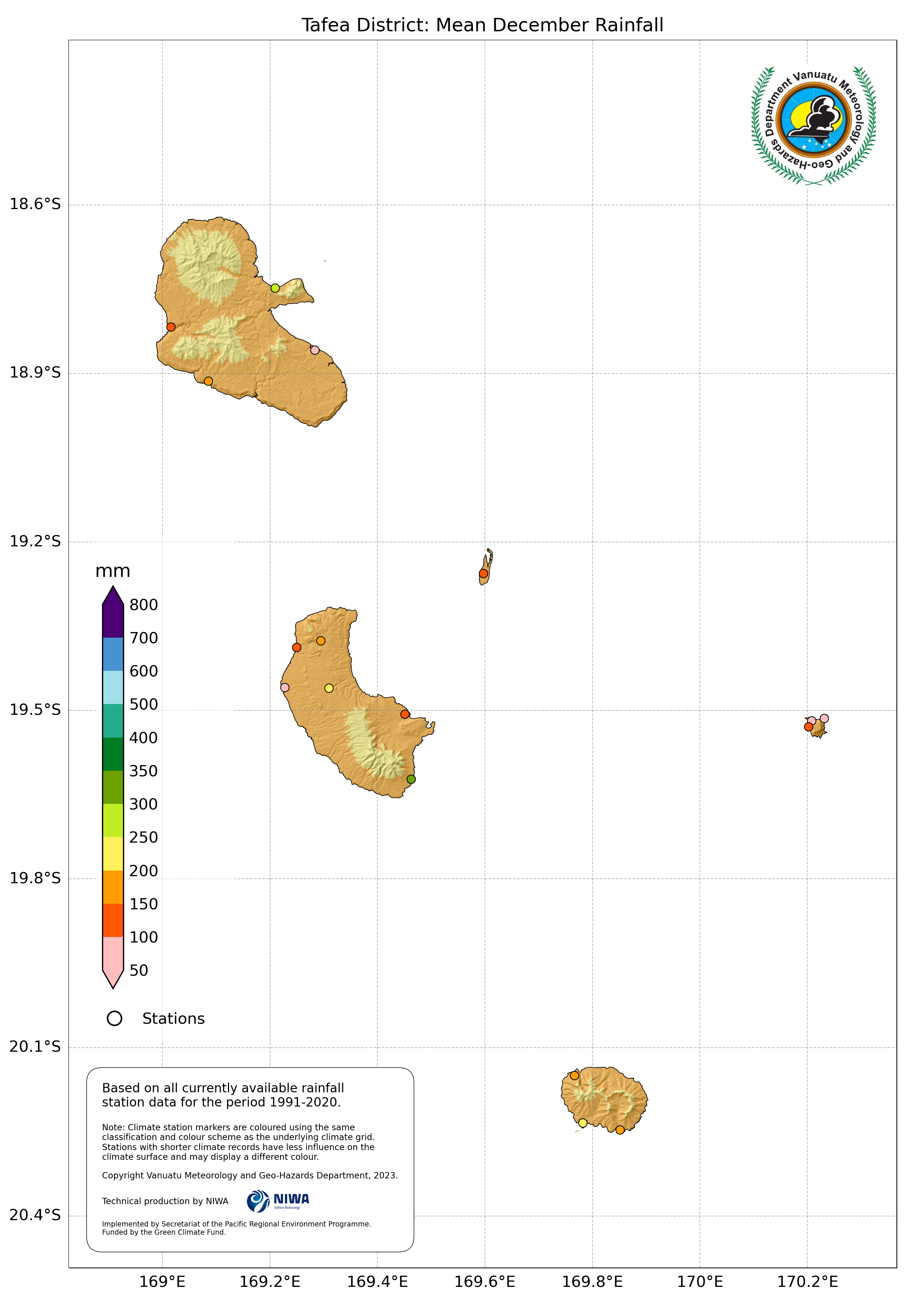 Mean December Rainfall Tafea 1991 - 2020